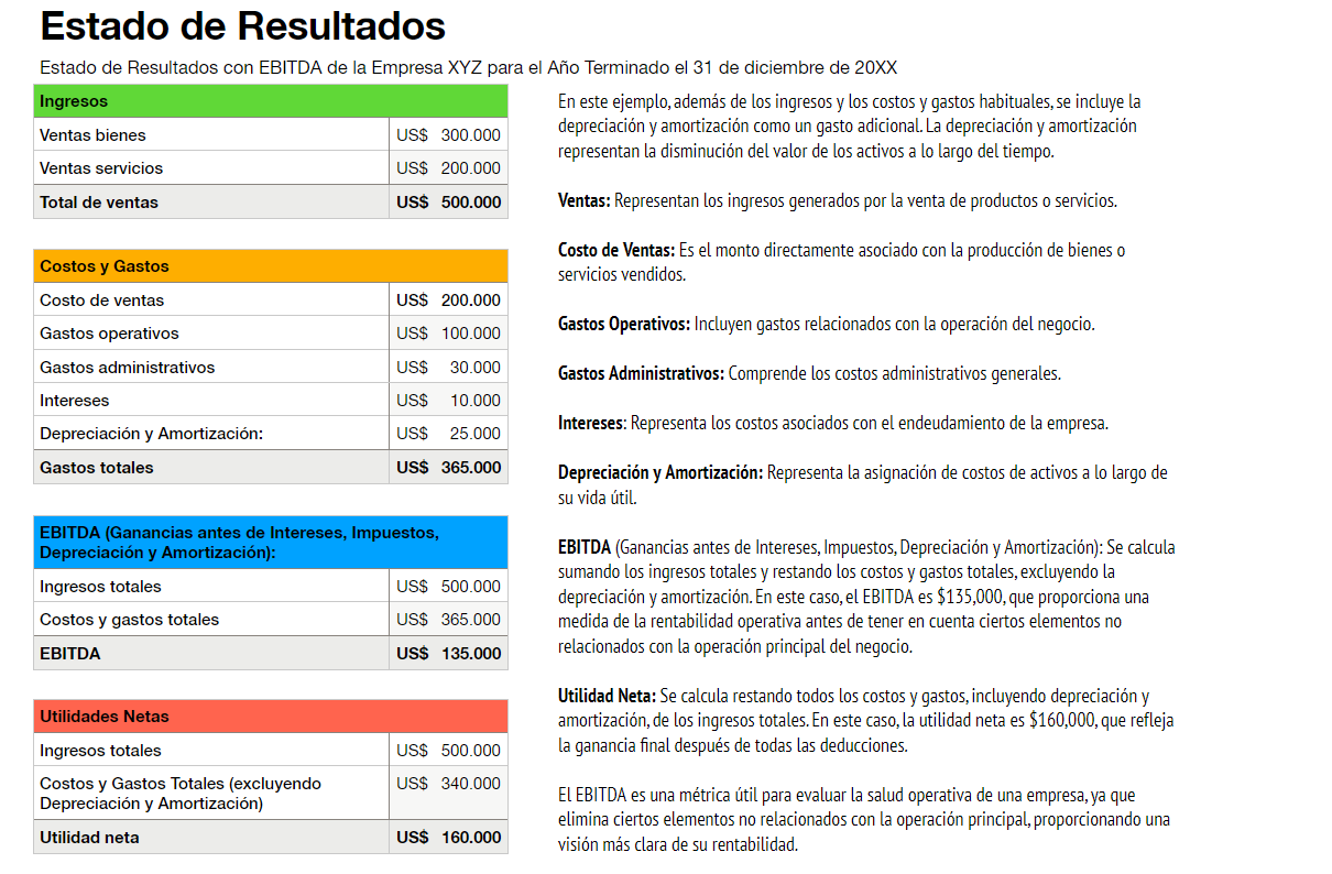 Supongamos que al finalizar el año fiscal, la Empresa XYZ presenta la siguiente información en su Estado de Resultados: